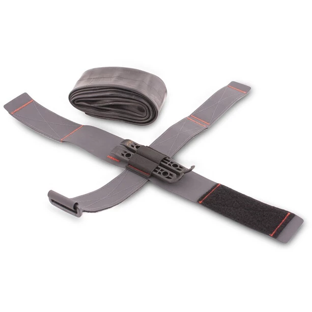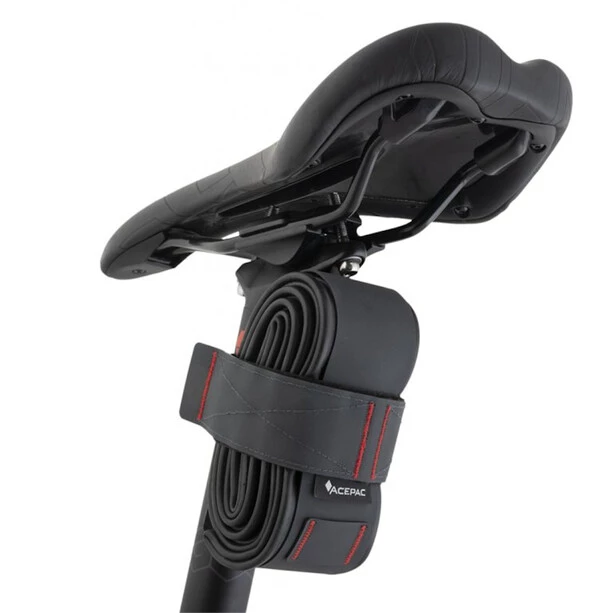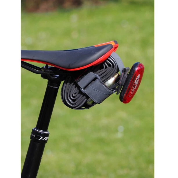 Un partenaire apprécié en cas de panne. En plus du tuyau emballé, l’enveloppe du tuyau peut également contenir des patins de fixation et un petit kit de réparation. Il est possible de fixer le porte-tube à n’importe quel tube du cadre ainsi que sous la selle.