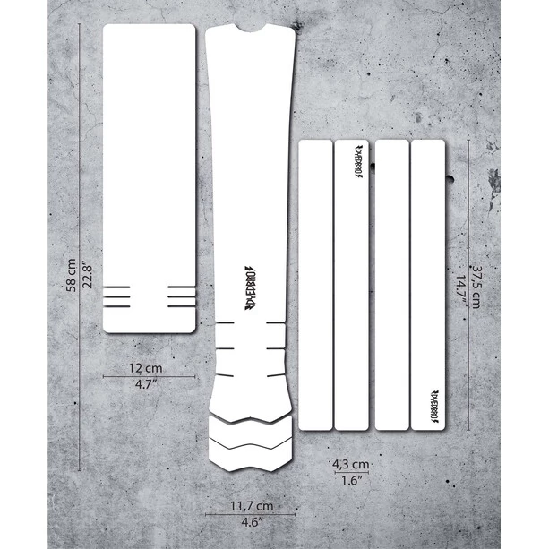 Garde ton vélo à l’abri des rayures grâce à ce kit de protection du cadre. Protection de cadre transparente avec impression du logo DYEDBRO en blanc.
