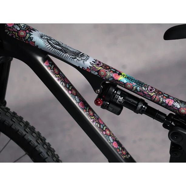 La Vierge de Guadalupe est un puissant symbole de la tradition mexicaine. Elle fait référence à l’année 1531, lorsque la Vierge Marie serait apparue à un natif du Mexique. Ce film de protection du cadre évite les éclats de peinture et les rayures dans toutes les zones protégées. Il est transparent, de sorte que la couleur de votre vélo reste visible en dessous. Conçu pour protéger le tube supérieur du cadre, le tube inférieur, les haubans de siège et les haubans de chaîne avec un total de 8 pièces.