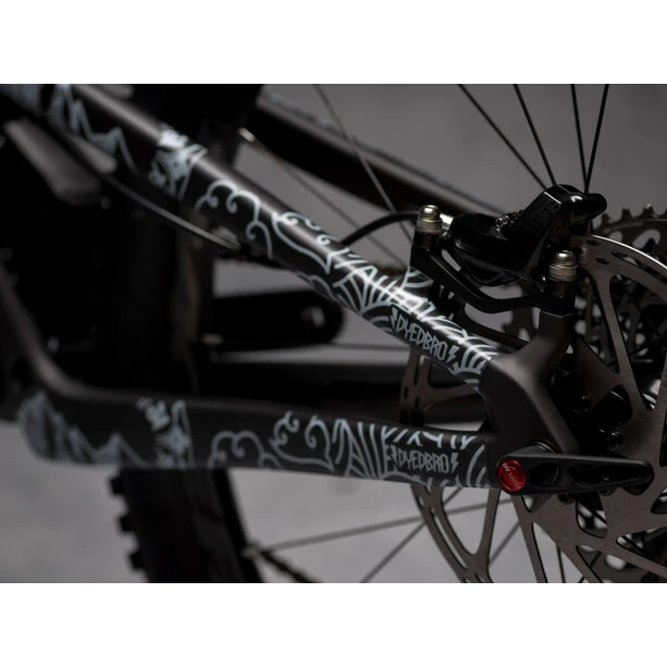 Avant son voyage dans l’Himalaya, Tito Tomasi voulait faire quelque chose de spécial avec son vélo. Il a donc fait ce qu’il fait le mieux : Il a créé une œuvre d’art étonnante, et DYEDBRO en a fait un protecteur de cadre !