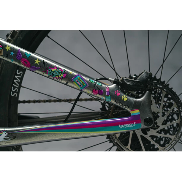 La licorne est souvent considérée comme la plus merveilleuse des créatures mythiques et est également un symbole d’émerveillement et de magie. La licorne de conte de fées n’apparaît qu’à quelques-uns et a la capacité de conférer magie et sagesse à ceux qui sont purs de cœur et vertueux. DYEDbro croit que votre vélo peut devenir cette créature magique et vous fournit ce protecteur de cadre pour que cela se produise ! MAINTENANT AVEC DES PAILLETTES !